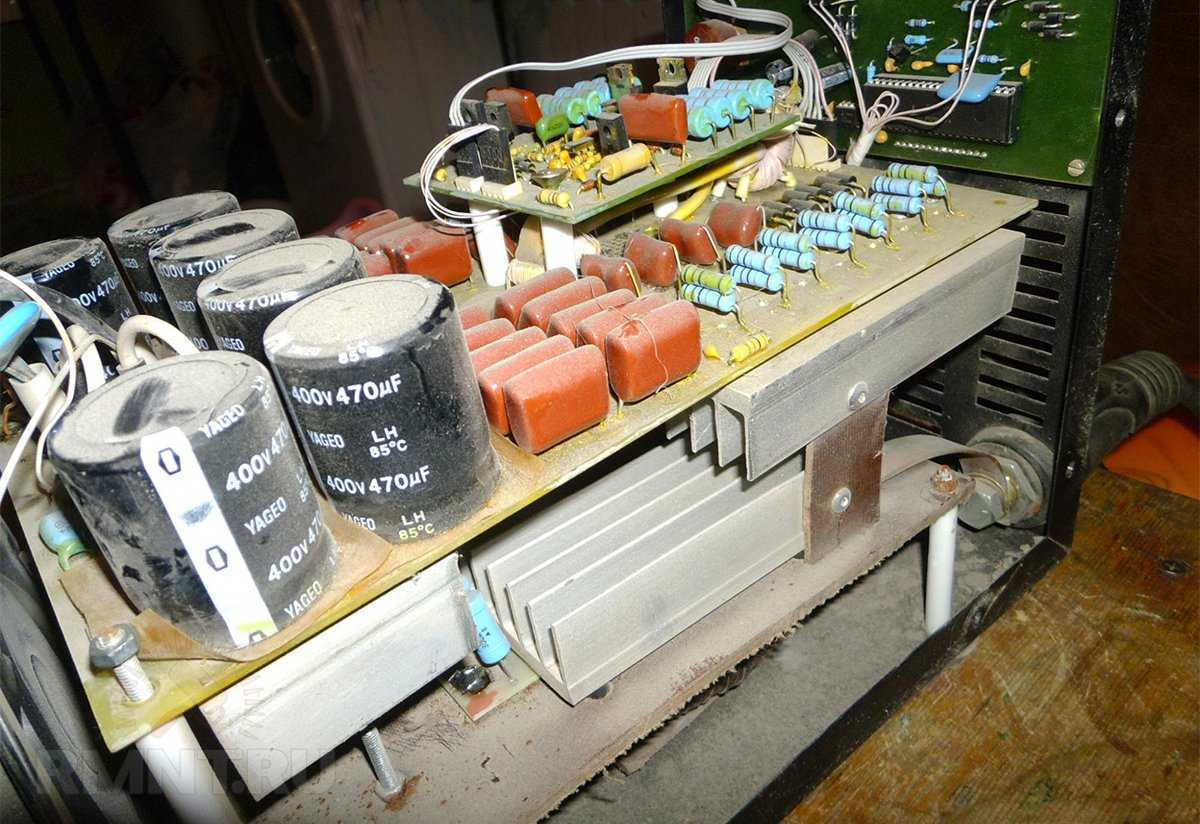 Вторая проблема — использование радиоэлементов сомнительной надёжности. Устранение этого недостатка сильно снижает вероятность возникновения поломок через 2–3 года эксплуатации аппарата. Наконец, даже начинающему радиотехнику будет вполне по силам реализовать индикацию фактического сварочного тока для возможности работы со специальными марками электродов, а также провести ряд других мелких доработок.