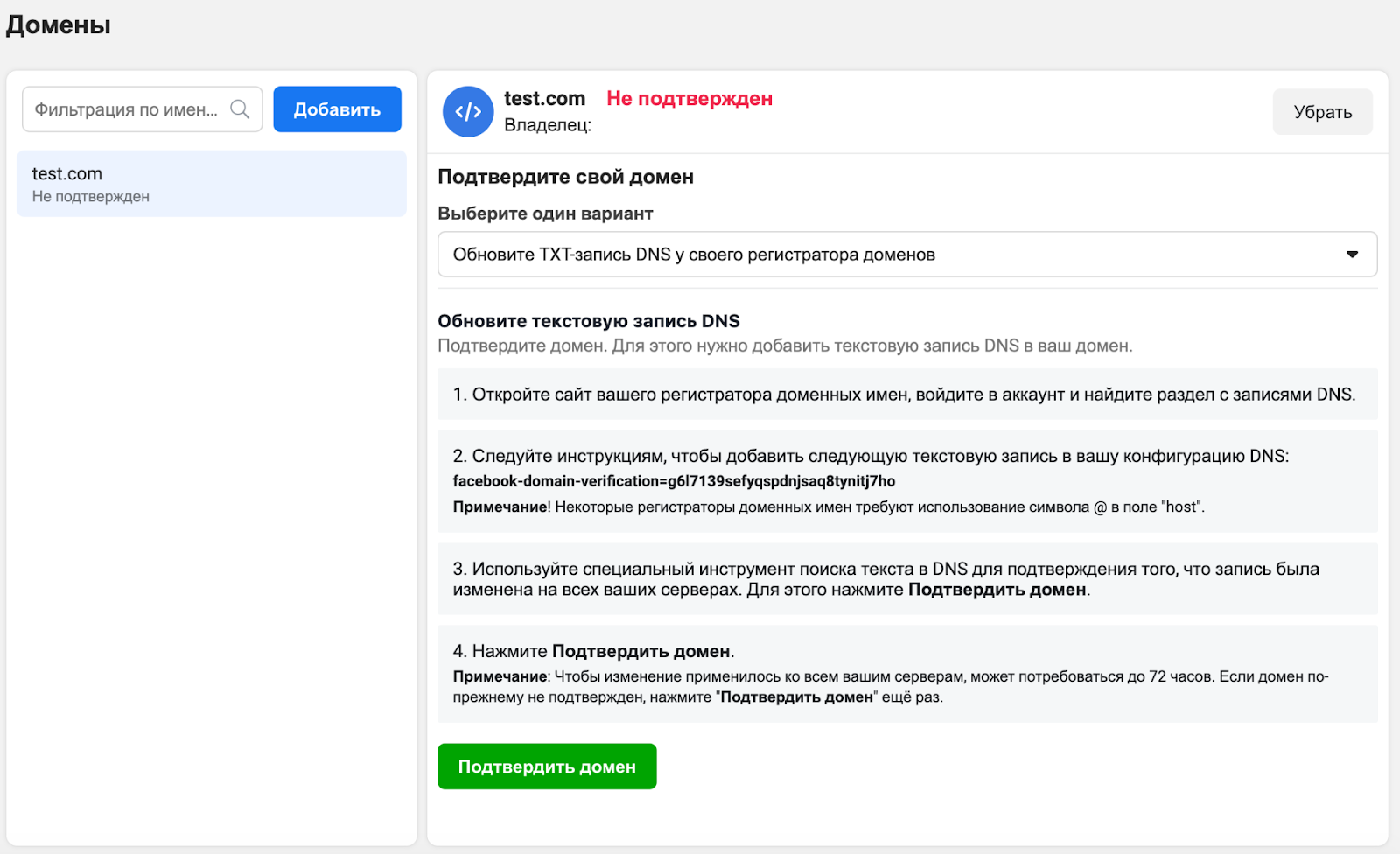 Помните, что подтвердить домен можно только при наличии прав администратора или разработчика.