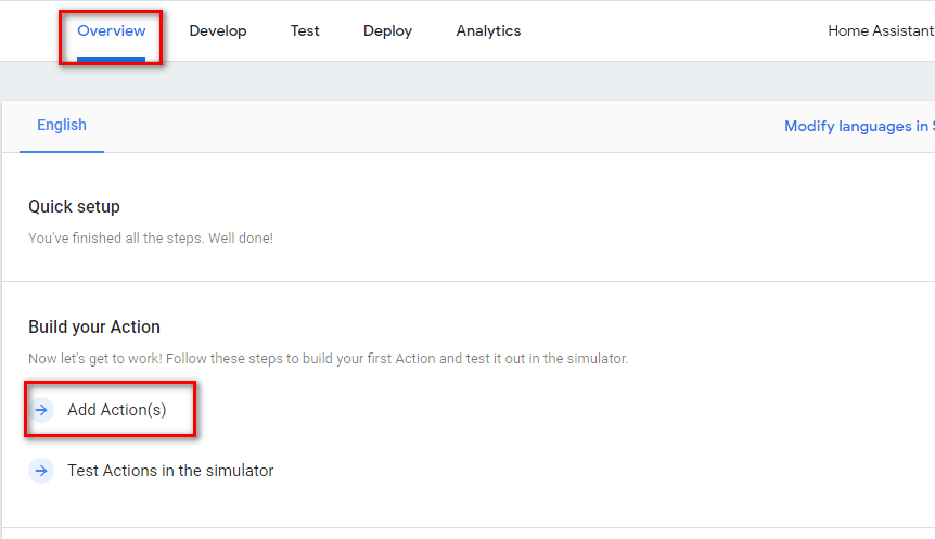 Далее вернитесь в раздел «Overview» и нажмите «Add Action(s)»: