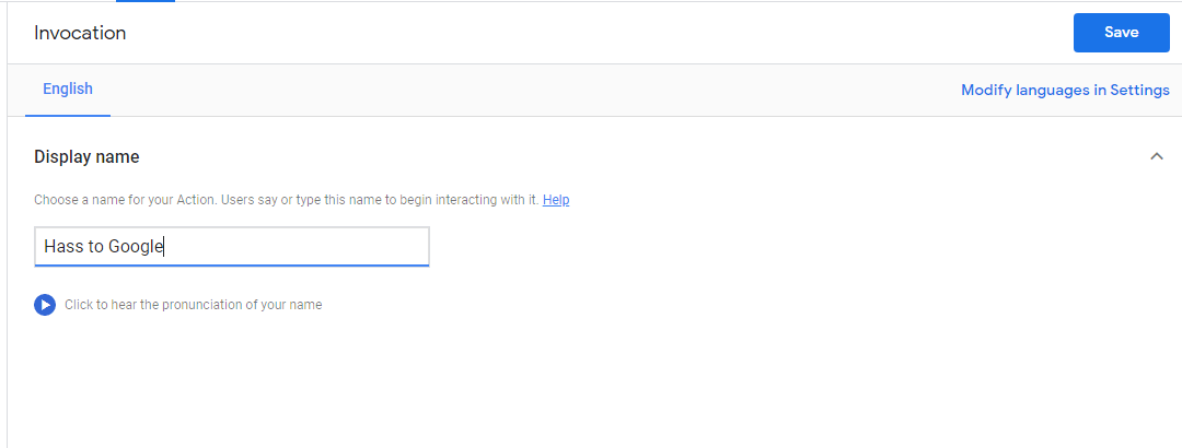В поле Add fulfillment URL вводим : https://my.home.com/api/google_assistant (https://my.home.com это адрес вашего Home Assistant из Интернета), и сохраняем изменения.