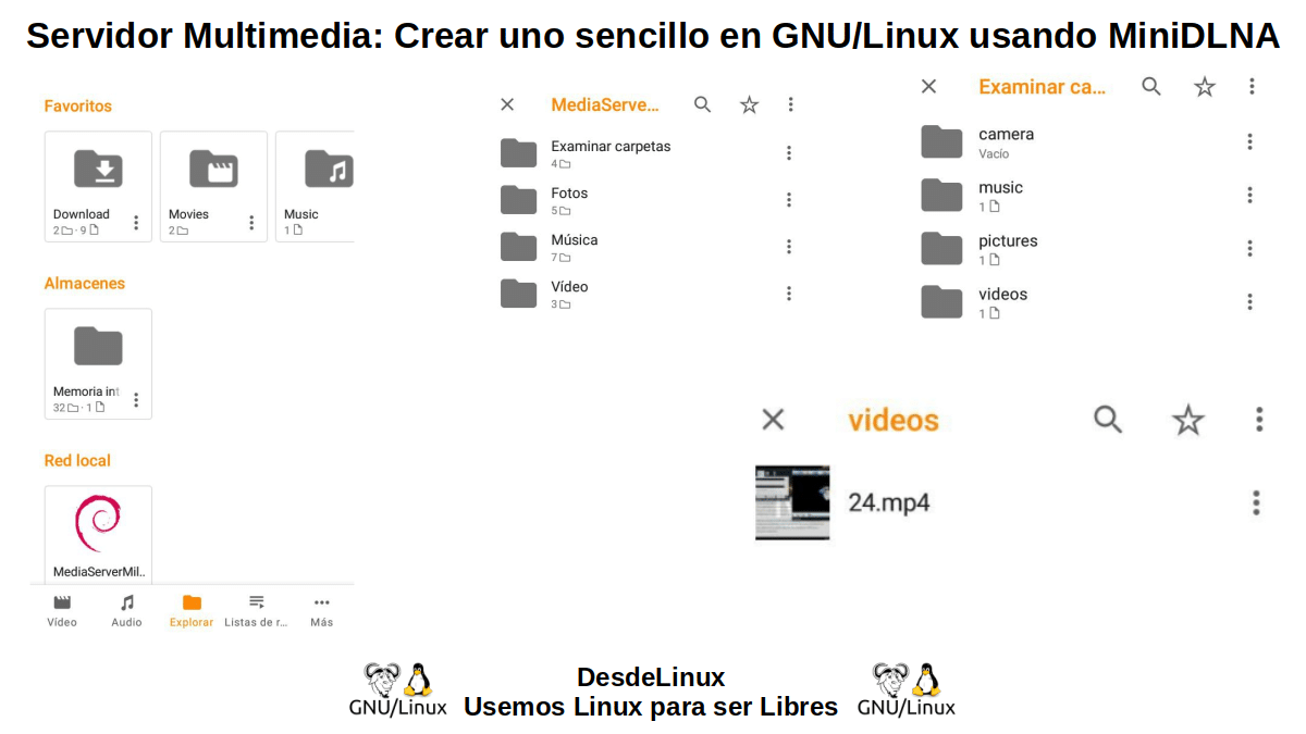 После установки необходимо сделать только следующее командные приказы и небольшие изменения в вашем Файл конфигурации а потом беги так, чтобы любой Компьютер с GNU / Linux стать маленьким и простым «Мультимедийный сервер»: