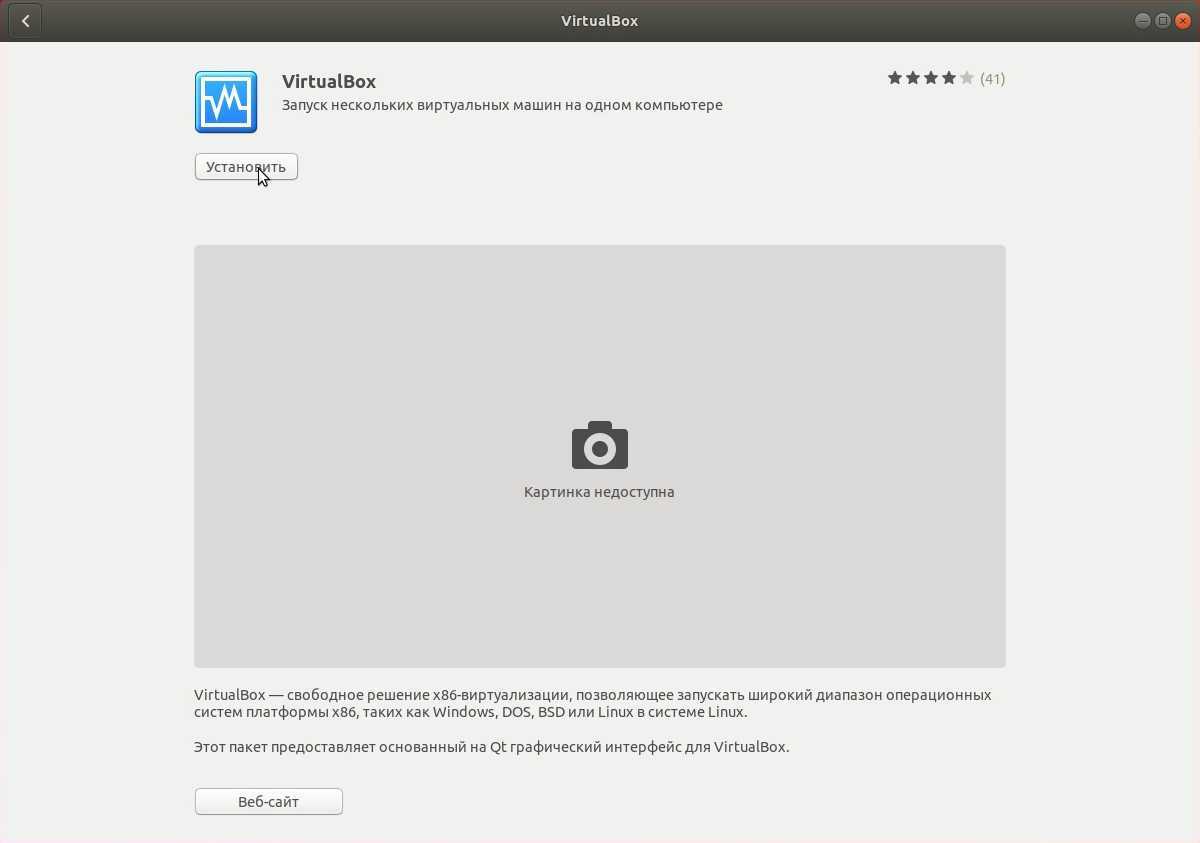 Заходим в менеджер приложений и в поиск вводим VirtualBox. После установки нажать на кнопку запустить.
