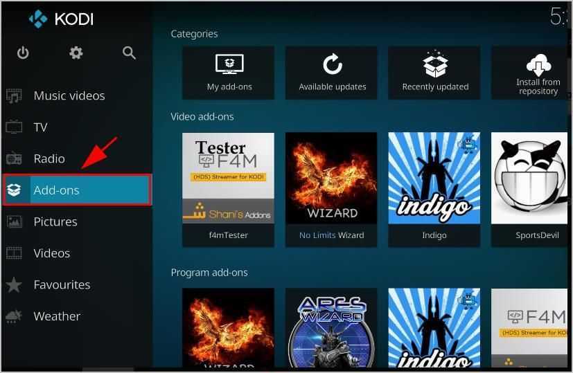 Как мы уже говорили после первого способа, ваши новые аддоны станут доступными в меню аддонов Kodi, чтобы вы могли начать использовать их почти мгновенно.
