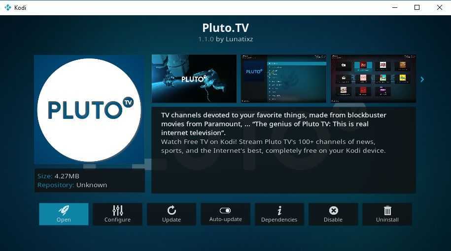 Аддон напрямую соединяется с потоковым сервисом Pluto.TV и веб-сайтом. Это делает весь контент доступным на вашем устройстве Kodi.