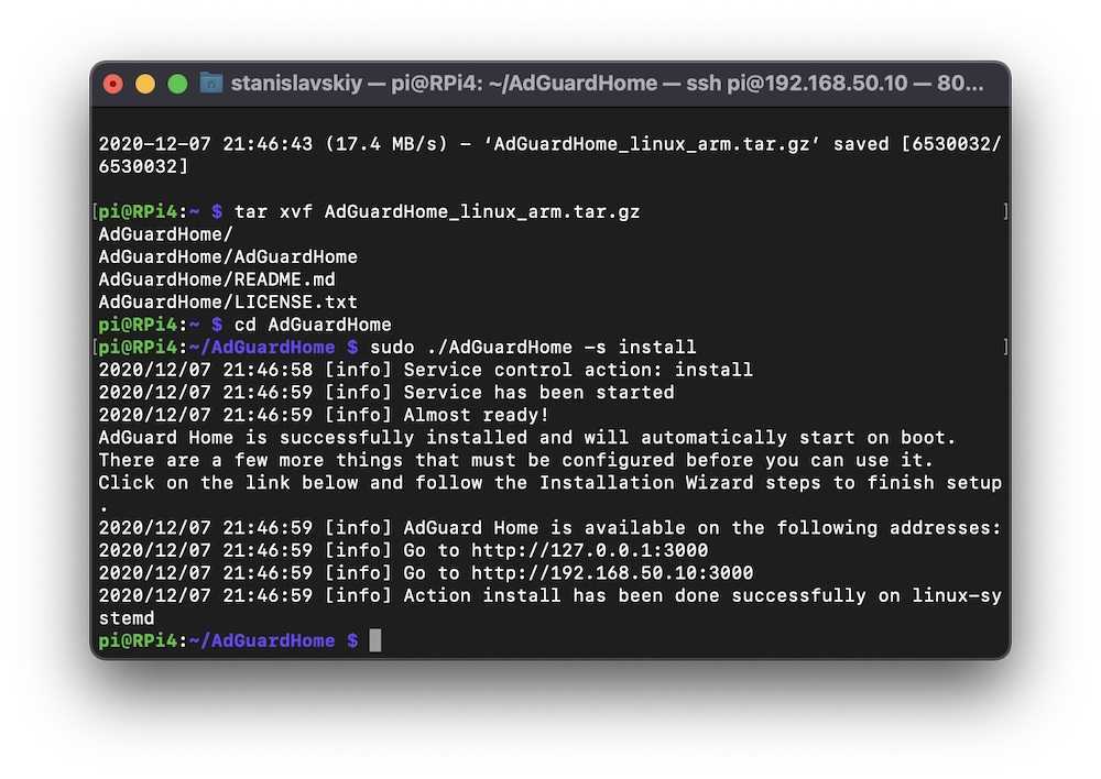 cd $HOME wget https://static.adguard.com/adguardhome/release/AdGuardHome_linux_armv6.tar.gz tar xvf AdGuardHome_linux_armv6.tar.gz