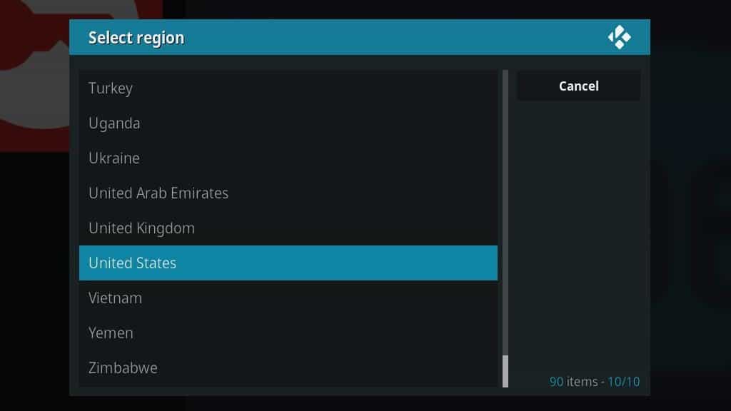 Running the wizard is optional, but I like to click the Yes button and step through it in order to set my language and country. You can change these settings later in the YouTube Kodi addon options menu.