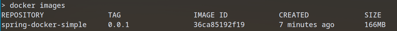 Точка в конце важна, она указывает на расположение Dockerfile (символ «точка» означает текущую директорию. Проверьте, что образ создан командой docker images. Вывод должен быть таким: