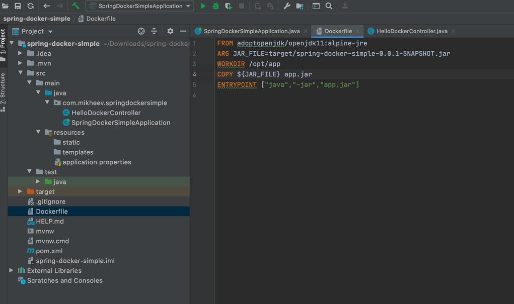 | ARG JAR_FILE=target/spring-docker-simple-0.0.1-SNAPSHOT.jar | Переменной JAR_FILE присваивается путь к jar- архиву |