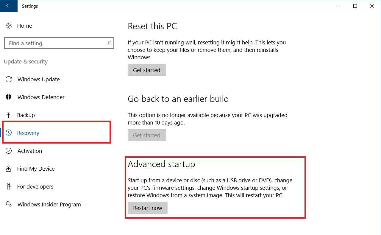 Во втором случае откройте панель управления, найдите вкладку «Обновление и безопасность», а затем «Восстановление». Выберите пункт «Особые варианты загрузки», дождитесь, пока компьютер выполнит перезагрузку и в появившемся окне щелкните по строке «Диагностика» — «Дополнительные параметры» — «Параметры встроенного ПО UEFI». Компьютер снова перезапустится, после чего перед вами откроется окно с необходимыми настройками.