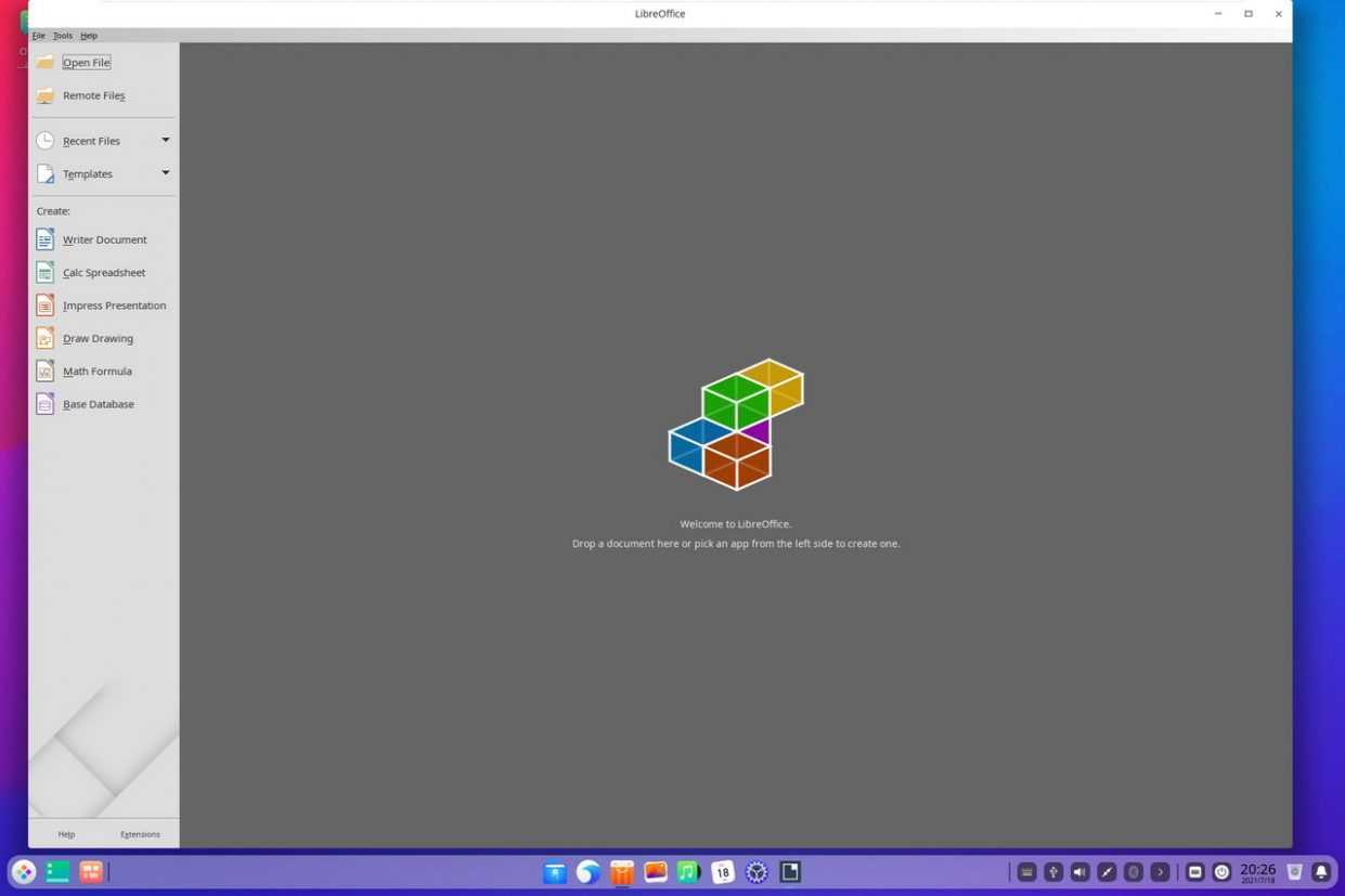 Текстовый процессор LibreOffice Writer, программное обеспечение для работы с электронными таблицами Calc и презентационное приложение Impress предустановлены в Ubuntu и большинстве его производных. В комплект также входят три менее известных приложения — Draw, Math и Base — которые используются для редактирования векторной графики, составления математических формул и управления базами данных соответственно..