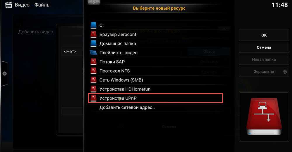 Kodi поддерживает работу в сети DLNA (поддержка внешних устройств UPnP/DLNA):