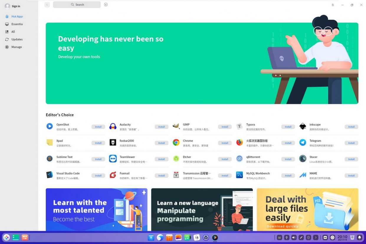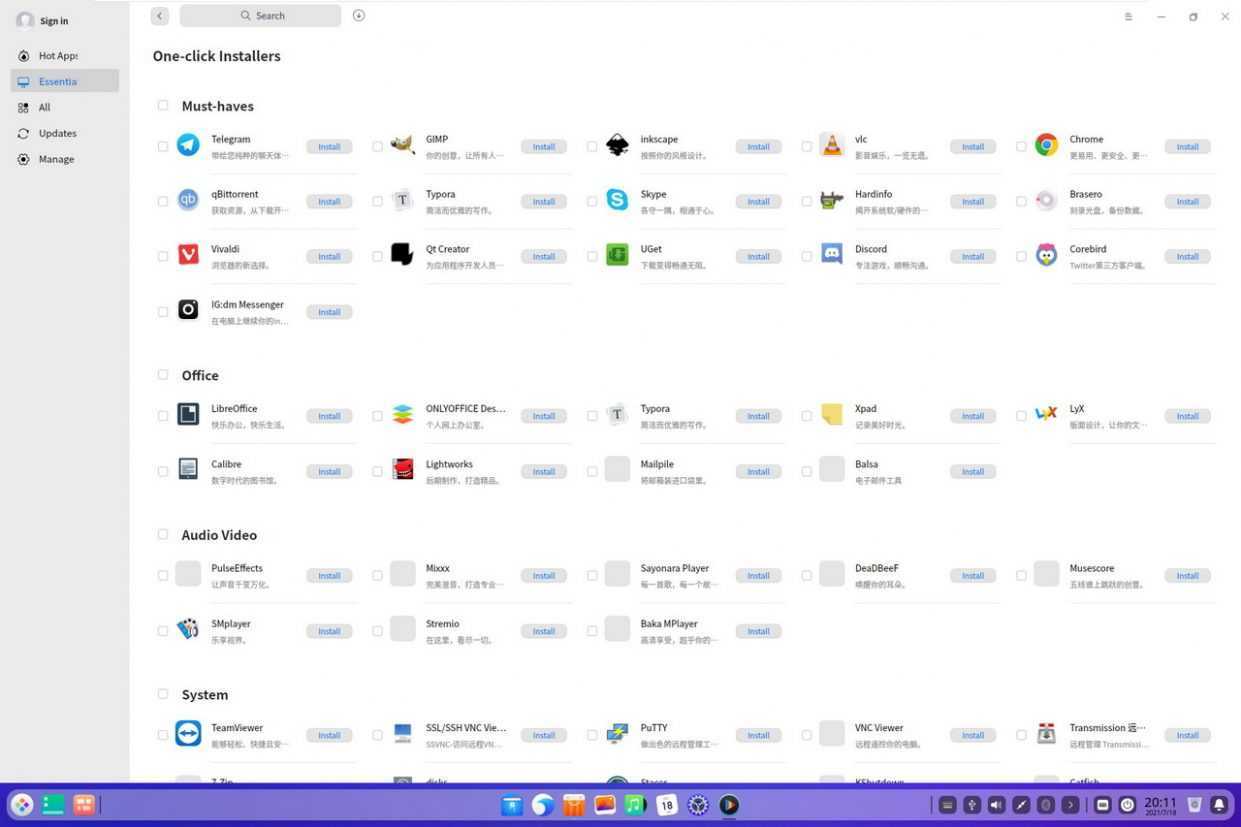 В текущую сборку Deepin включены все необходимые для старта приложения. Знакомых среди них немного: