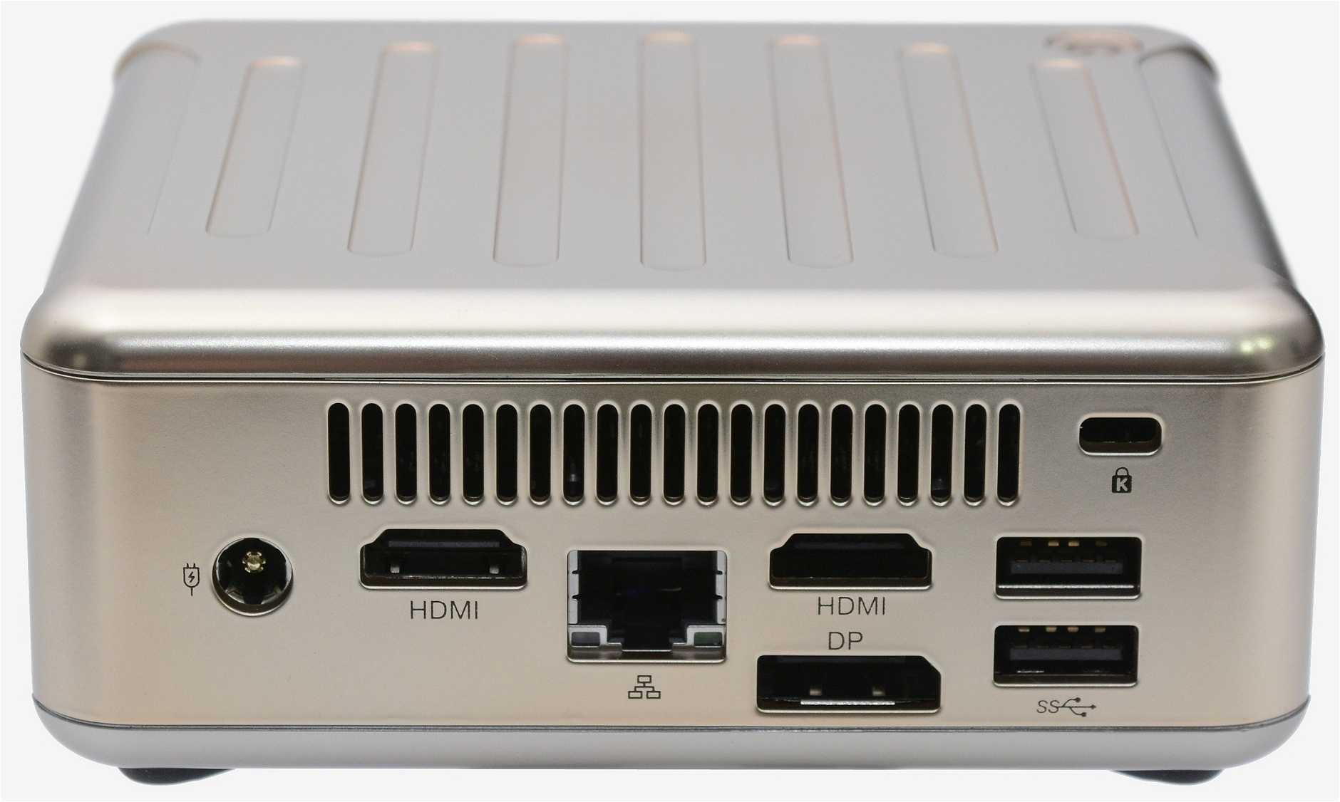 Монитор или телевизор подключаются по HDMI или DisplayPort. Разъем HDMI есть на всех устройствах, DisplayPort — только у половины. Если вы уже любуетесь картинкой телевизора с разрешением 4K в собственной гостиной, вам стоит приобрести мини-ПК как минимум с DisplayPort 1.2. Начиная с этой версии и выше, этот разъем может передавать 4K с кадровой частотой 60 FPS. HDMI 1.4 успевает обработать только 30 кадров/с, а мини-ПК с HDMI 2.0 пока не существует.