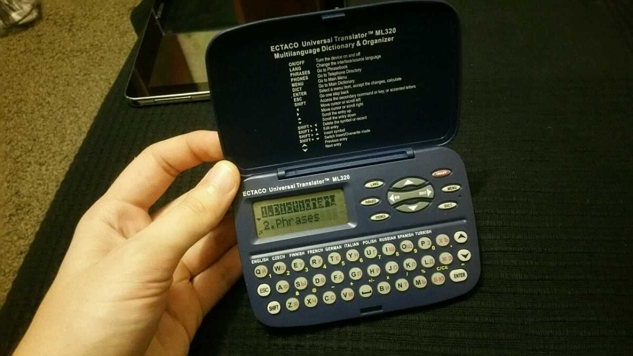 Суть работы такого устройства заключается в считывании информации специальным сканером, её переводе и выведении результата на встроенный чёрно-белый дисплей. С помощью такого устройства можно не только считывать уже написанный текст, но и вводить слова для перевода самостоятельно.Устройство станет незаменимым инструментом в путешествиях:с его помощью можно перевести любые карты, таблички и надписи, меню в кафе и ресторанах.
