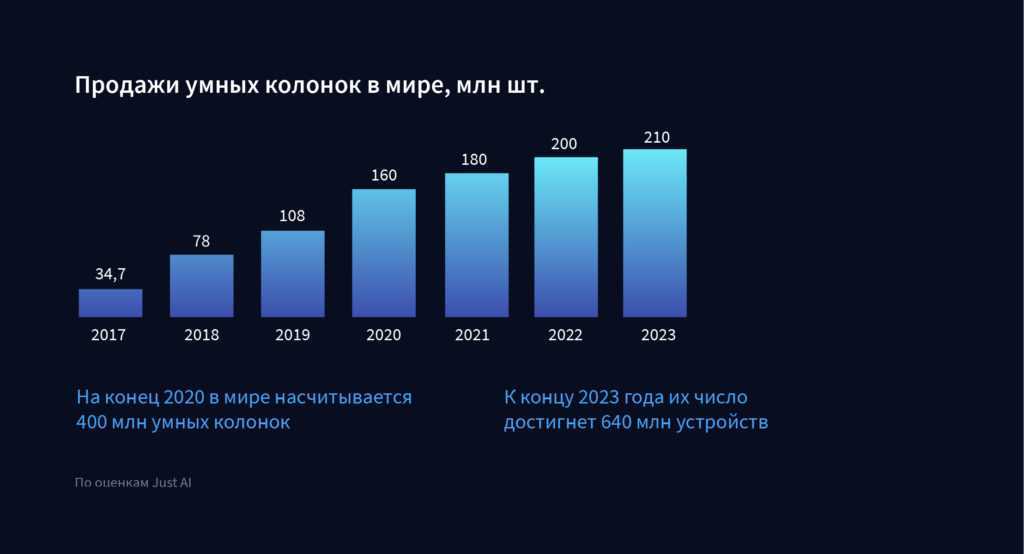 Несмотря на пандемию, по оценкам Just AI, в 2020 году будет продано более 100 тыс. умных колонок «Капсула». Стоит сказать, что Mail.ru задержали запуск «Капсулы», так как часть фабрик в Китае были остановлены на определенный период. Затем, когда колонка появилась в продаже, никто не ходил в магазины из-за режима самоизоляции. Для сравнения: по нашим оценкам, за первый год продаж Яндекс. Станции было реализовано 40 тыс. устройств.