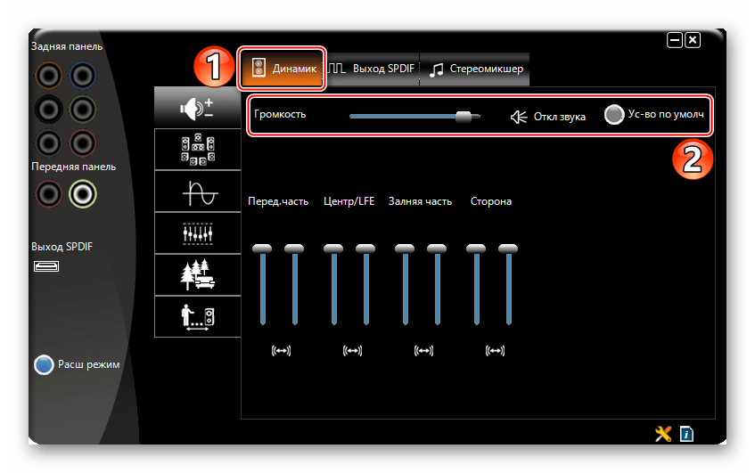 То, какое сопутствующее ПО будет установлено на компьютер, зависит от поставщика аудиокодеков (Realtek, VIA и т.д.). Мы рассмотрим настройку колонок на примере утилиты VIA HD Audio Deck. Кратко ознакомимся с ее возможностями, так как она дублирует настройки, описанные выше, поэтому принципиально нового ничего не предложит. Но, возможно, для кого-то это ПО будет удобнее.