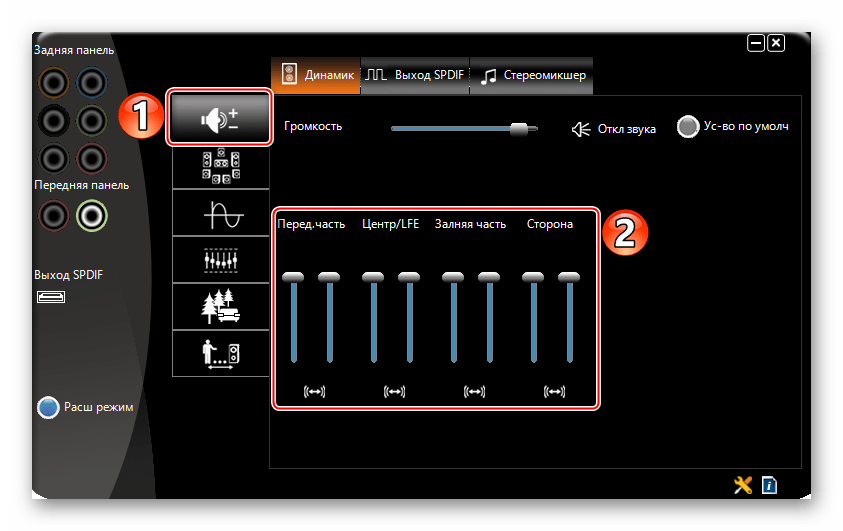 Во вкладке «Контроль звука» регулируем громкость отдельных динамиков.