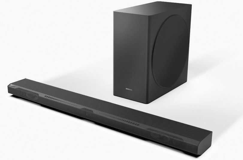 Стоит отметить, что саундбар преследуют практически те же проблемы, что и телевизор. Будучи вытянутым и плоским, саундбар с трудом воспроизводит низкие частоты. Поэтому большинство существующих на рынке моделей комплектуется сабвуфером — например, Samsung HQ-Q800T.