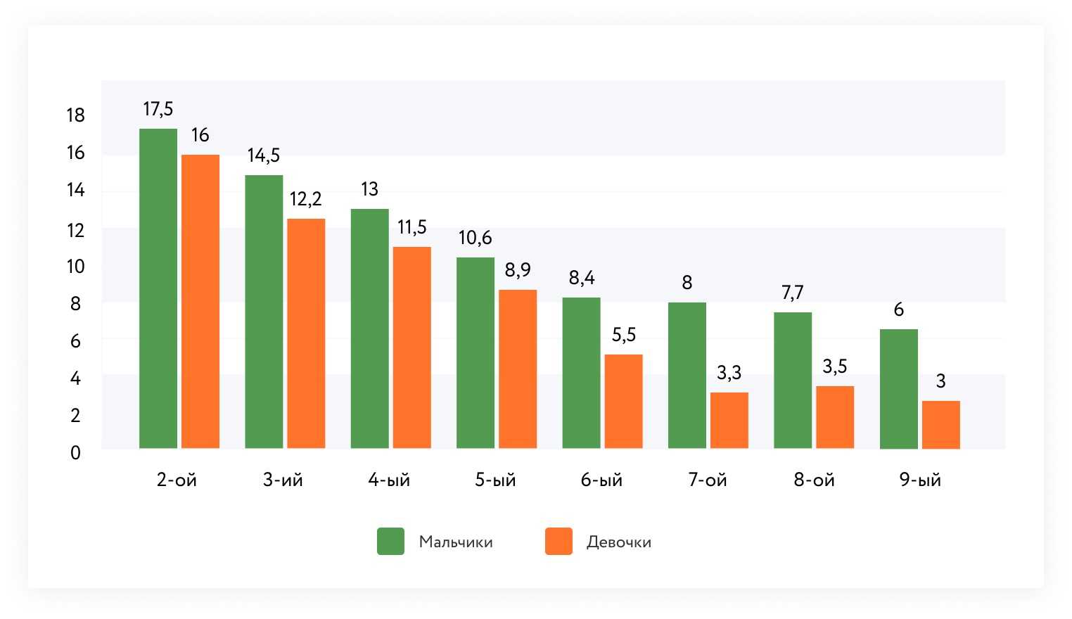 Буллинг наиболее распространён в начальной и средней школе. К 10–11 классам на фоне процессов созревания мозговых структур и способности у подростков к саморегуляции он постепенно сходит на нет.