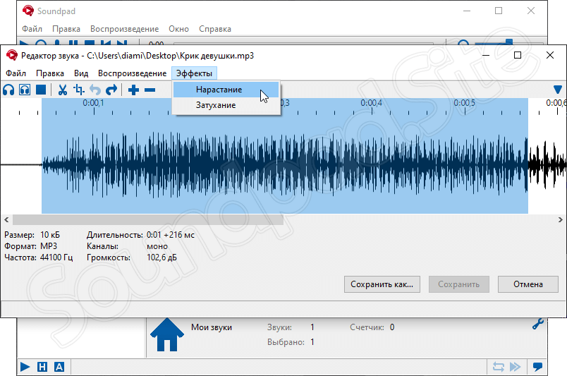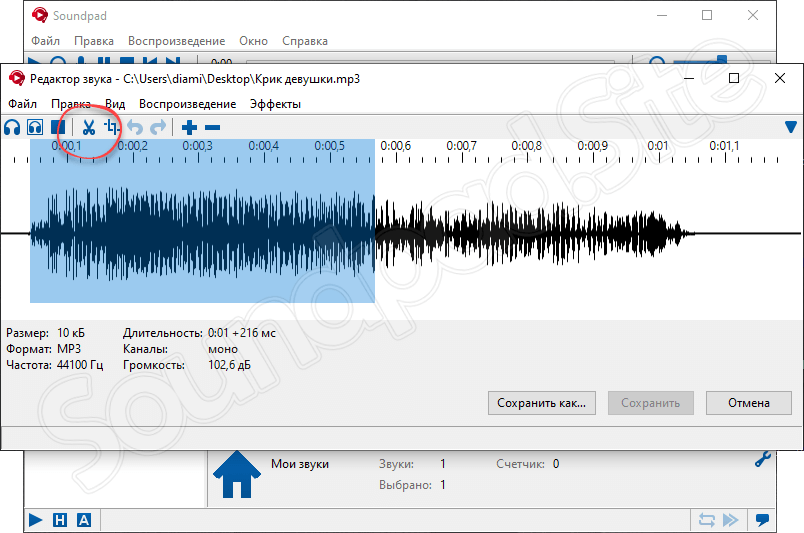 Иногда звуки, которые мы записали самостоятельно либо скачали из сети, необходимо немножко доделать. В Soundpad предусмотрен специальный инструмент для этого. Давайте рассмотрим, как им правильно пользоваться: