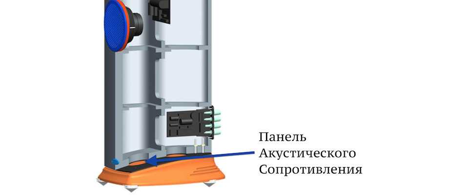 Рама, делящая внутренний объем корпуса на две части, является одновременно панелью акустического сопротивления (ПАС).