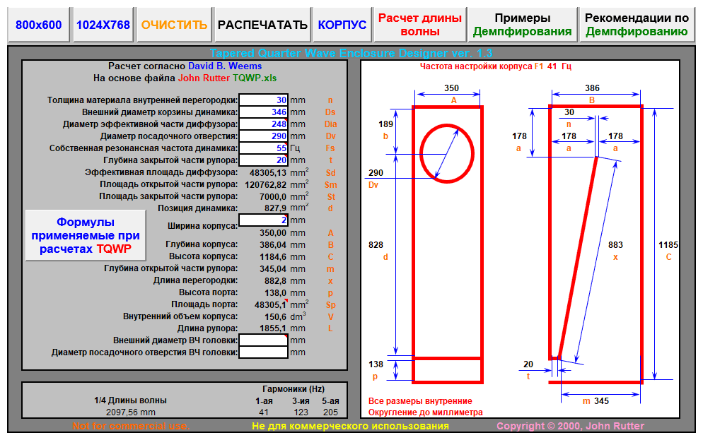 Но мы не ищем легких путей. Прокручивая Интернет в очередной раз, наткнулся на статью по описанию и изготовлению TQWP. Решение было принято и начался процесс. Так же АС строились на перспективу, с возможностью дальнейшего апгрейда под замену акустики. Расчет производился в одноименной программе