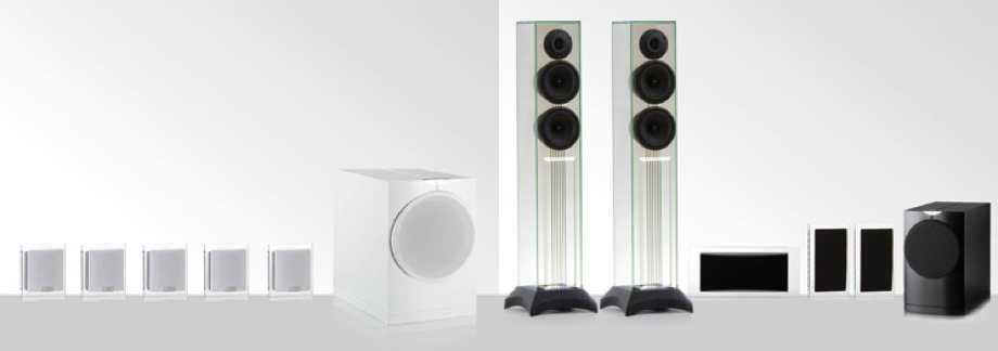 Комплекты акустики для домашнего кинотеатра Waterfall Pack 1 (слева) и Waterfall Pack 5 (справа)