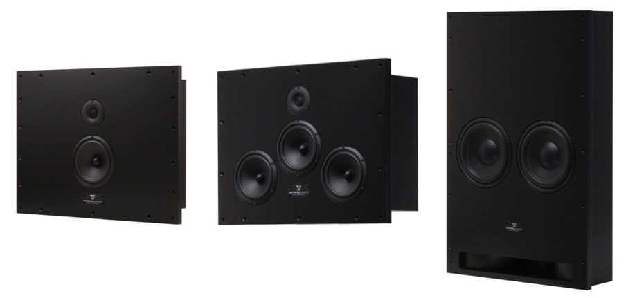 Встраиваемая акустика Waterfall Audio (слева направо): SAT150, LCR300 и SUB600