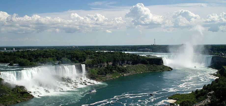 Ниагарский водопад расположен на границы Канады и США. Его высота 56 метров.