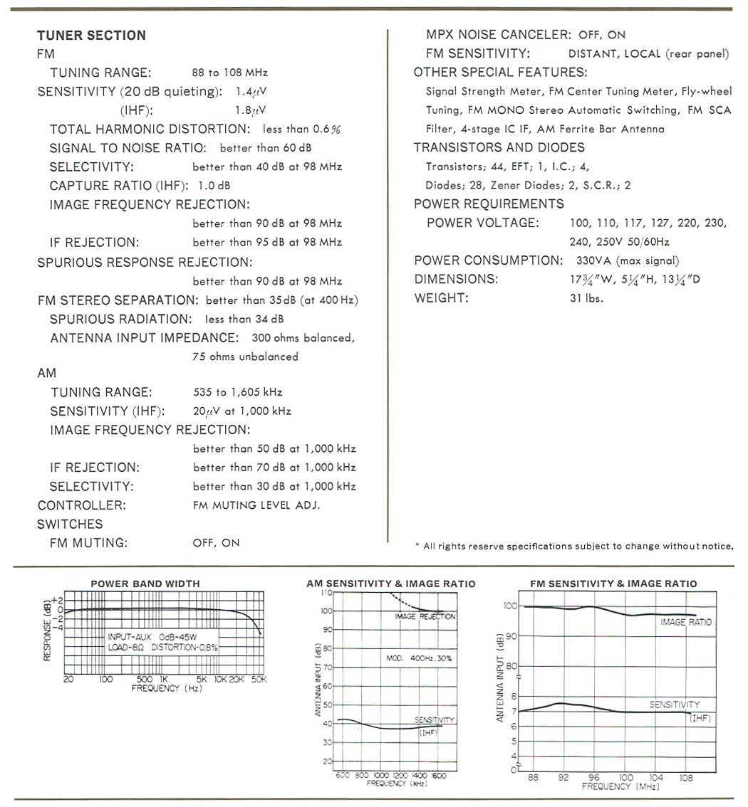 - В целом я ожидал все же более качественного изделия от такой именитой фирмы как Sansui. На момент производства а именно в 1969 году этот аппарат стоил 380 долларов. Сегодня полностью обслуженный и рабочий аппарат в США Канаде вряд ли потянет на 150 долларов, хотя есть горячие головы, которые пытаются продать его за 300 долларов США, что я считаю нерациональной ценой.