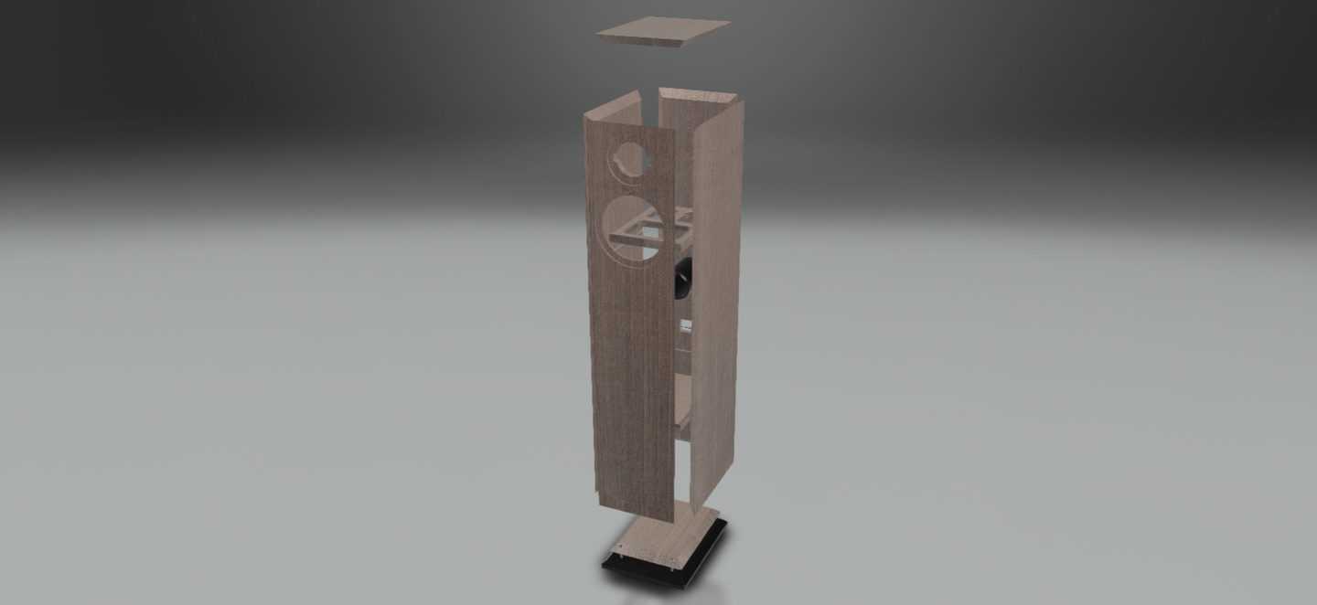 Разработан детальный 3Д проект и чертежи для производства. Важные параметры, такие как: расстояние между динамиками, ширина лицевой панели, полезный объем были сохранены.