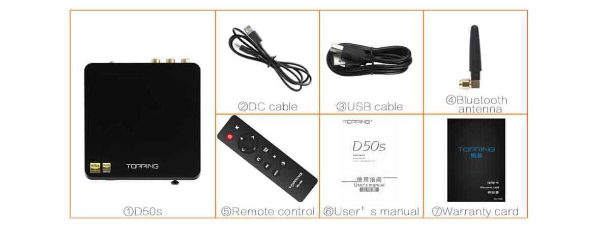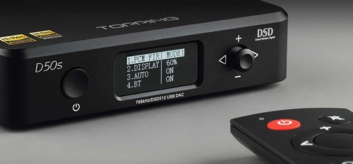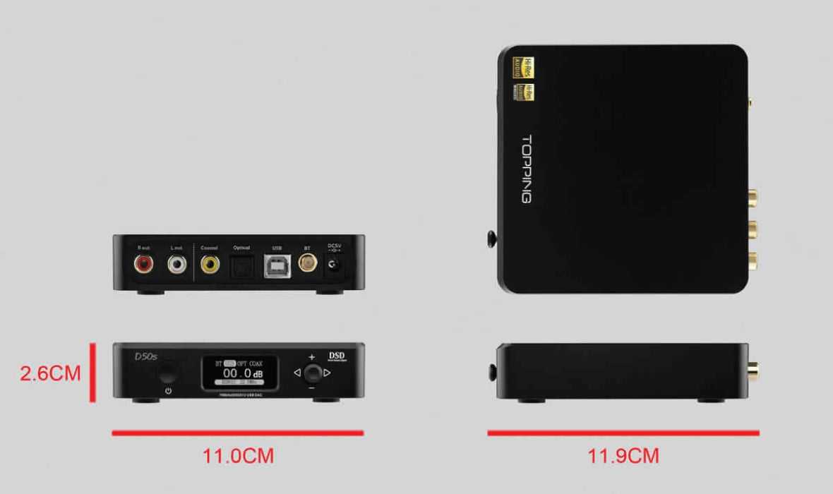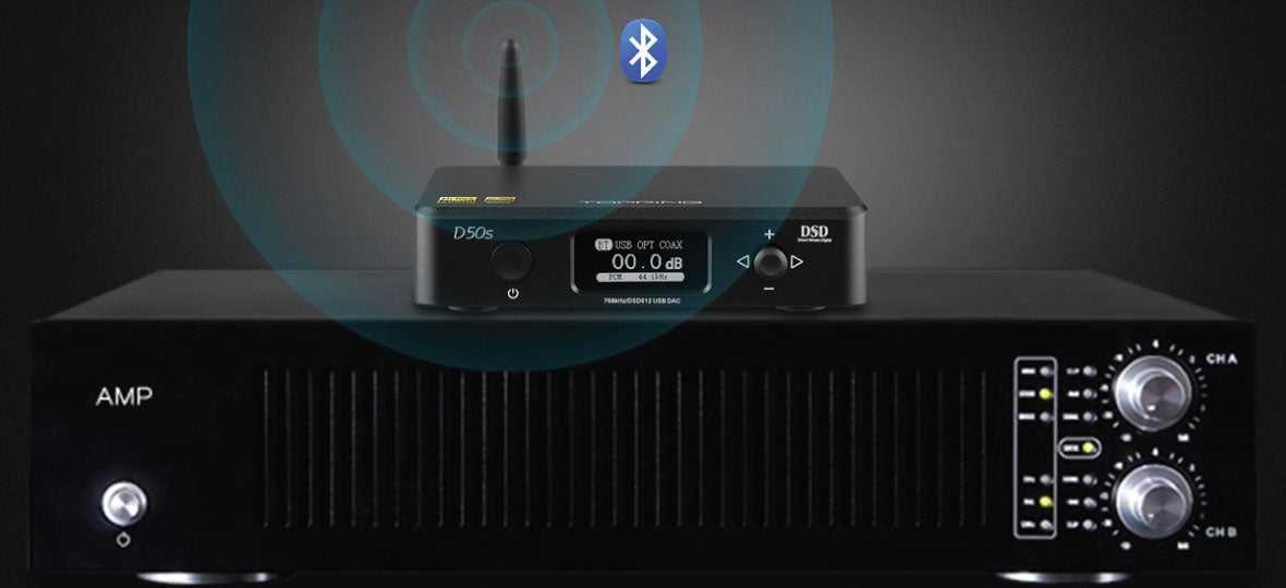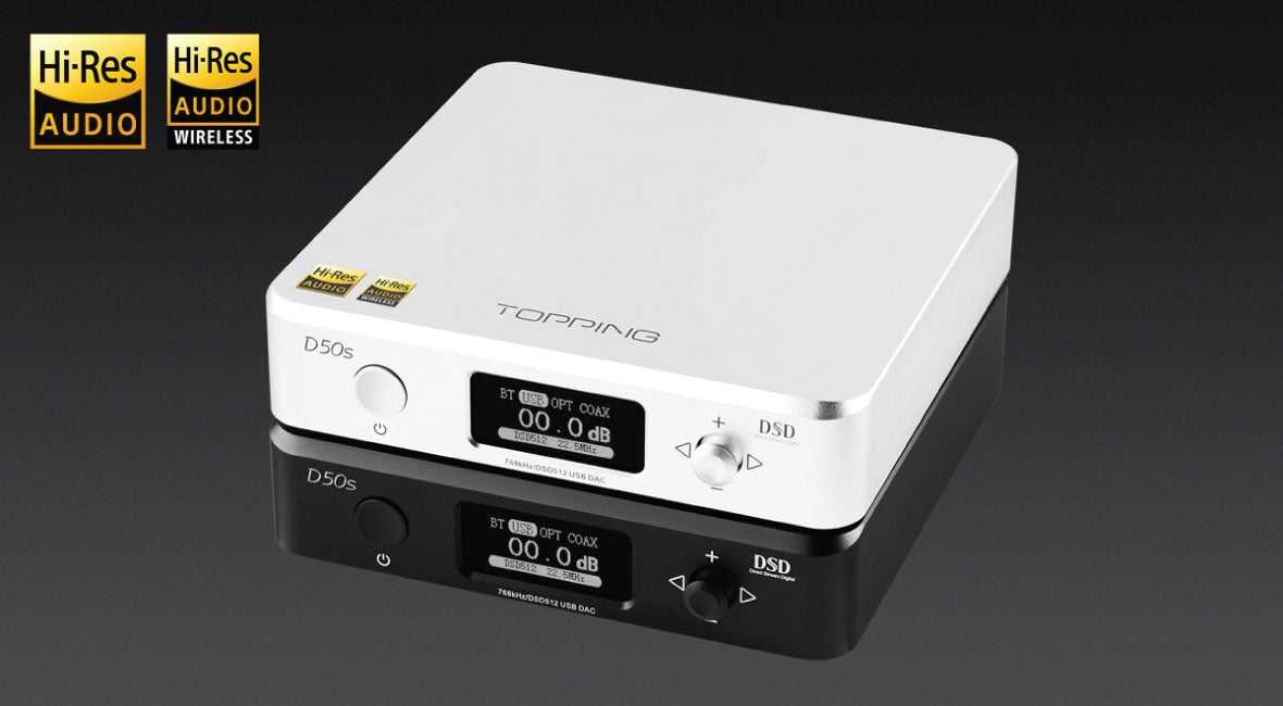 The Topping Audio D50s is a high-end DAC. It uses a dual ES9038Q2M DAC Chip which supports playback up to DSD512 and PCM 32-bit/768kHz. Bluetooth v5.0 and advanced audio codecs like LDAC, aptX HD, aptX & more allow for hi-res audio transmission even wirelessly.
