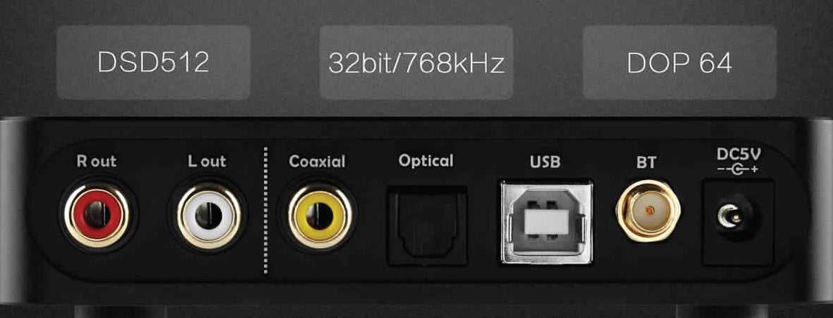 | USB IN | 44.1kHz-768kHz/16bit-32bit, DSD64-DSD512(Native), DSD64-DSD256(Dop) |