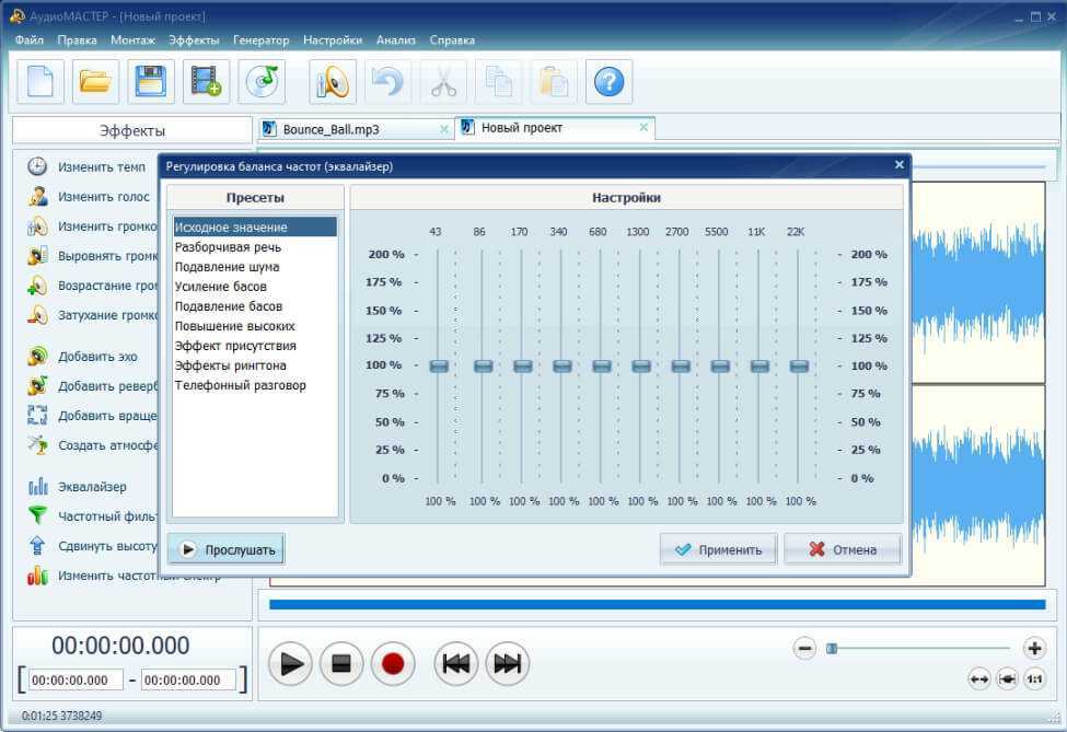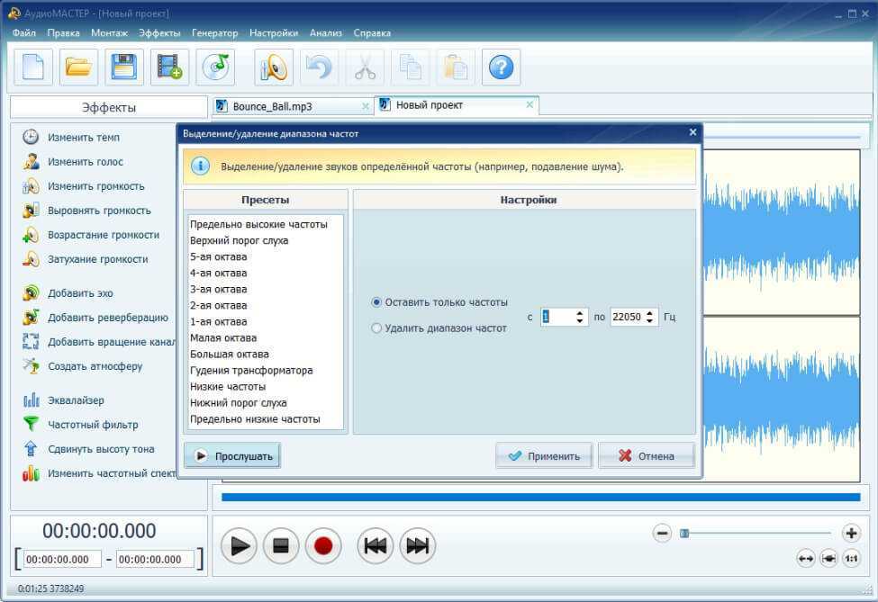 Производим частотную обработку в АудиоМАСТЕРЕ