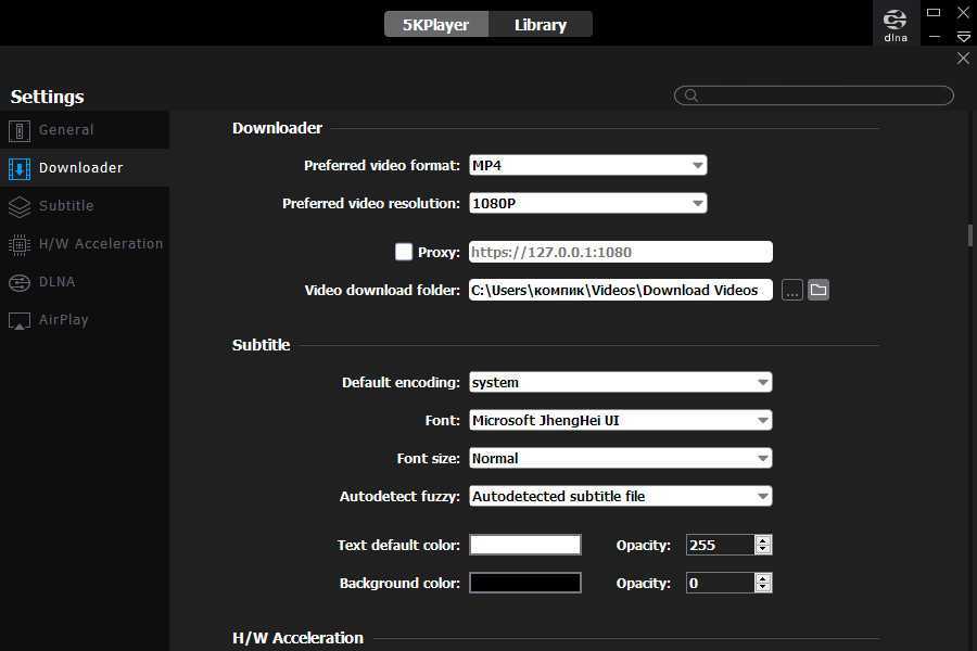 предпочитаемый формат и разрешение скачиваемых с YouTube роликов, изменение параметров субтитров (их цвет, прозрачность, размер и гарнитура шрифта).