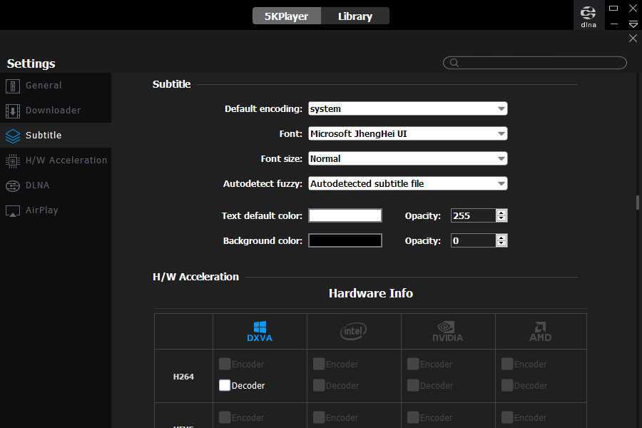 Здесь же включается аппаратное ускорение, задаются настройки DLNA и AirPlay.