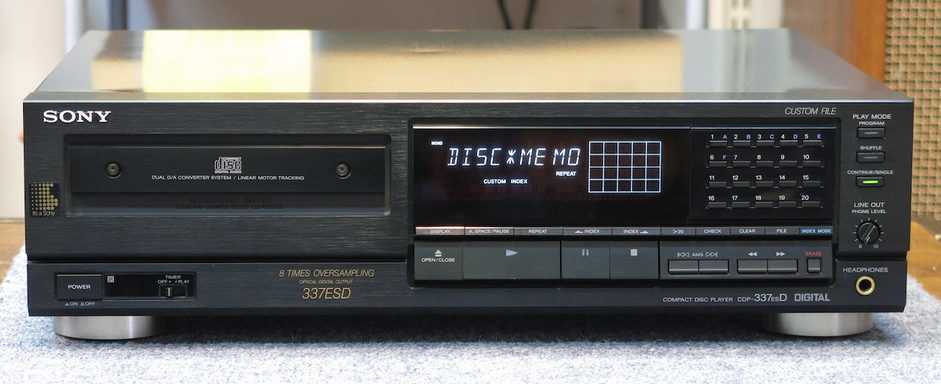 Эта модель была уже подробно рассмотрена в прошлом материале. Устройство появилось на рынке в тот самый момент, когда знаменитый японский финансовый пузырь только-только начал сдуваться. Sony CDP-337ESD представлял собой образец, каким должен быть лазерный проигрыватель солидного конторского служащего.
