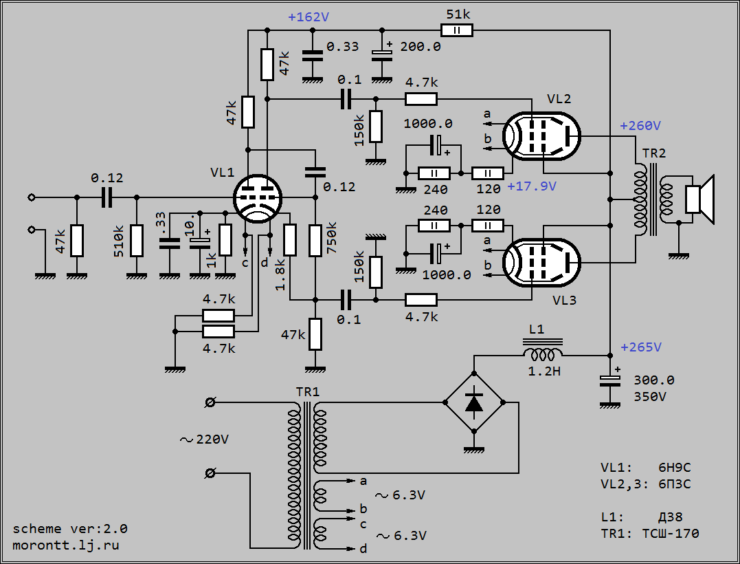 Простой ламповый усилитель мощности на 14-20 Ватт (6Н2П, 6П14П)