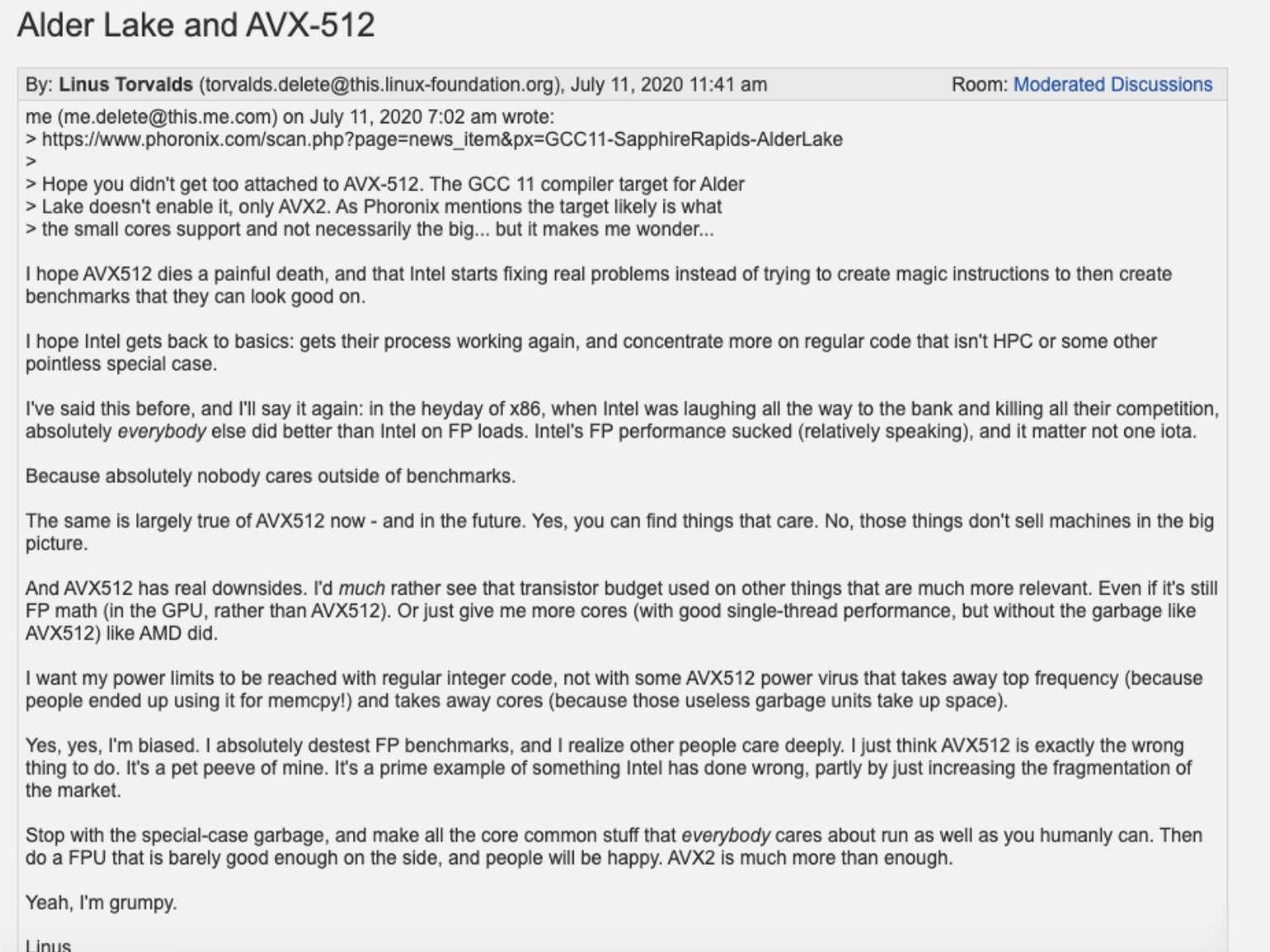 Эта порция ненависти тоже свежая — из 2020 года. И появилась она в дискуссии об Advanced Vector Extensions 512 (AVX-512), которые можно найти на некоторых процессорах Intel.
