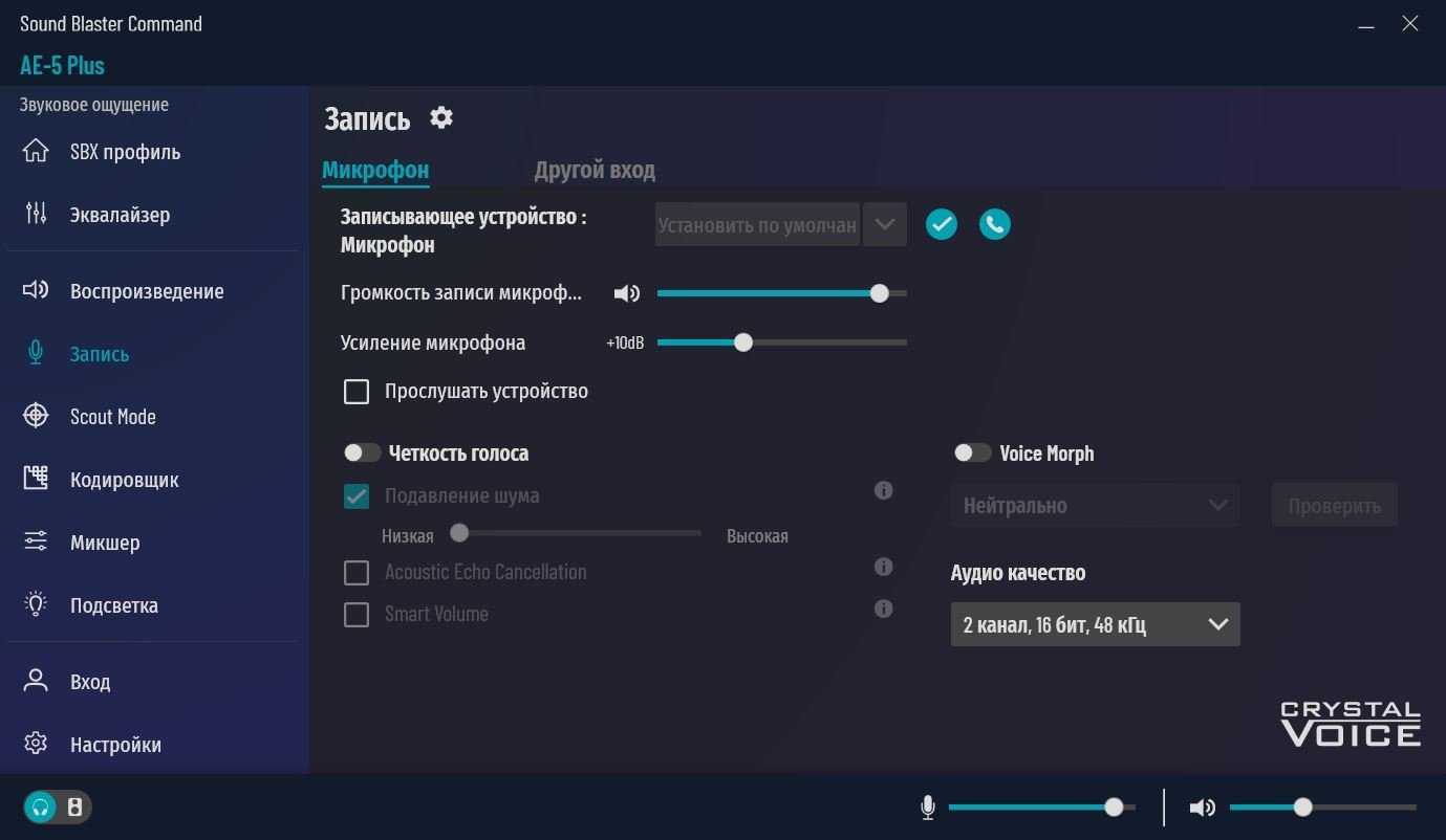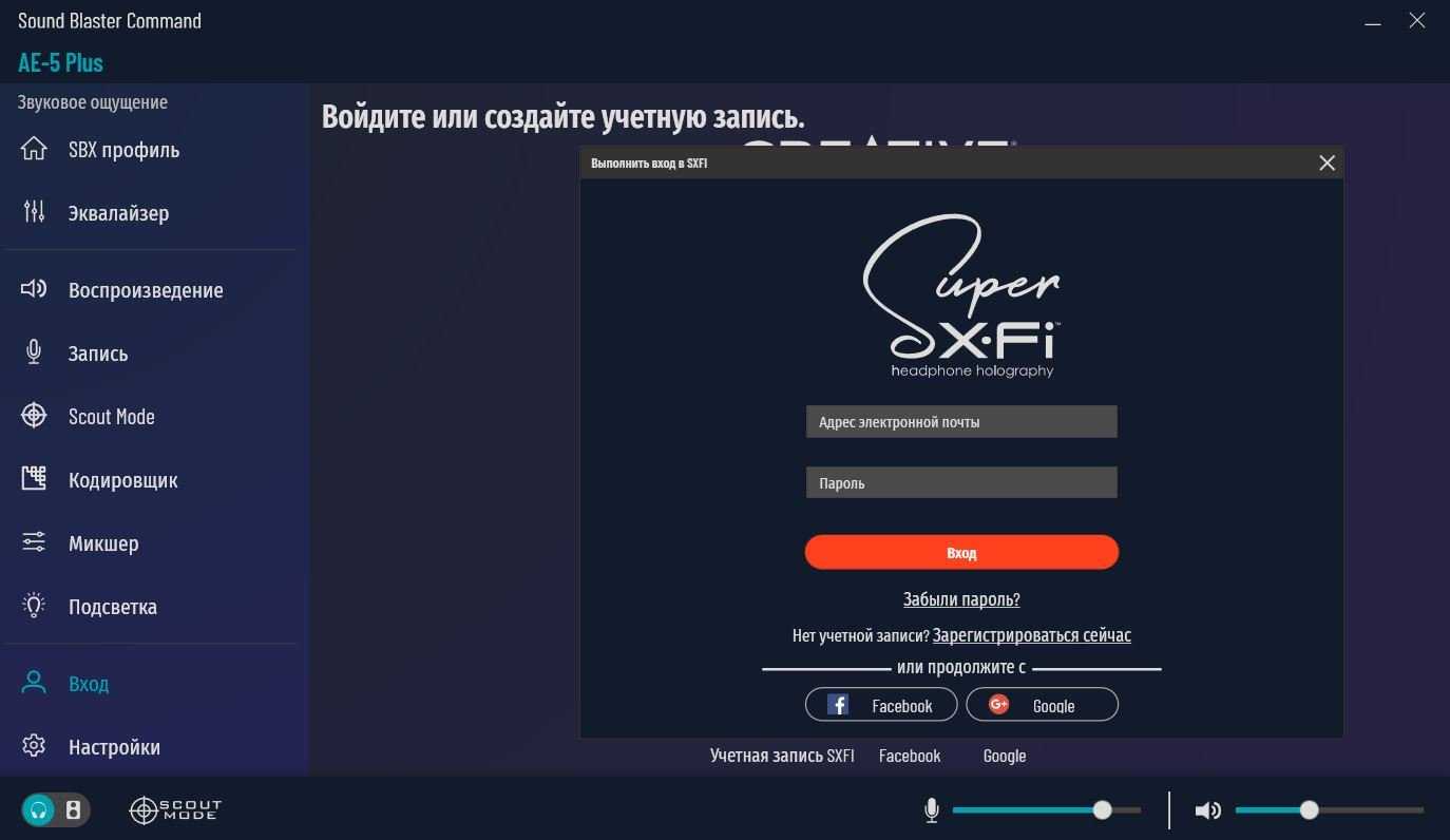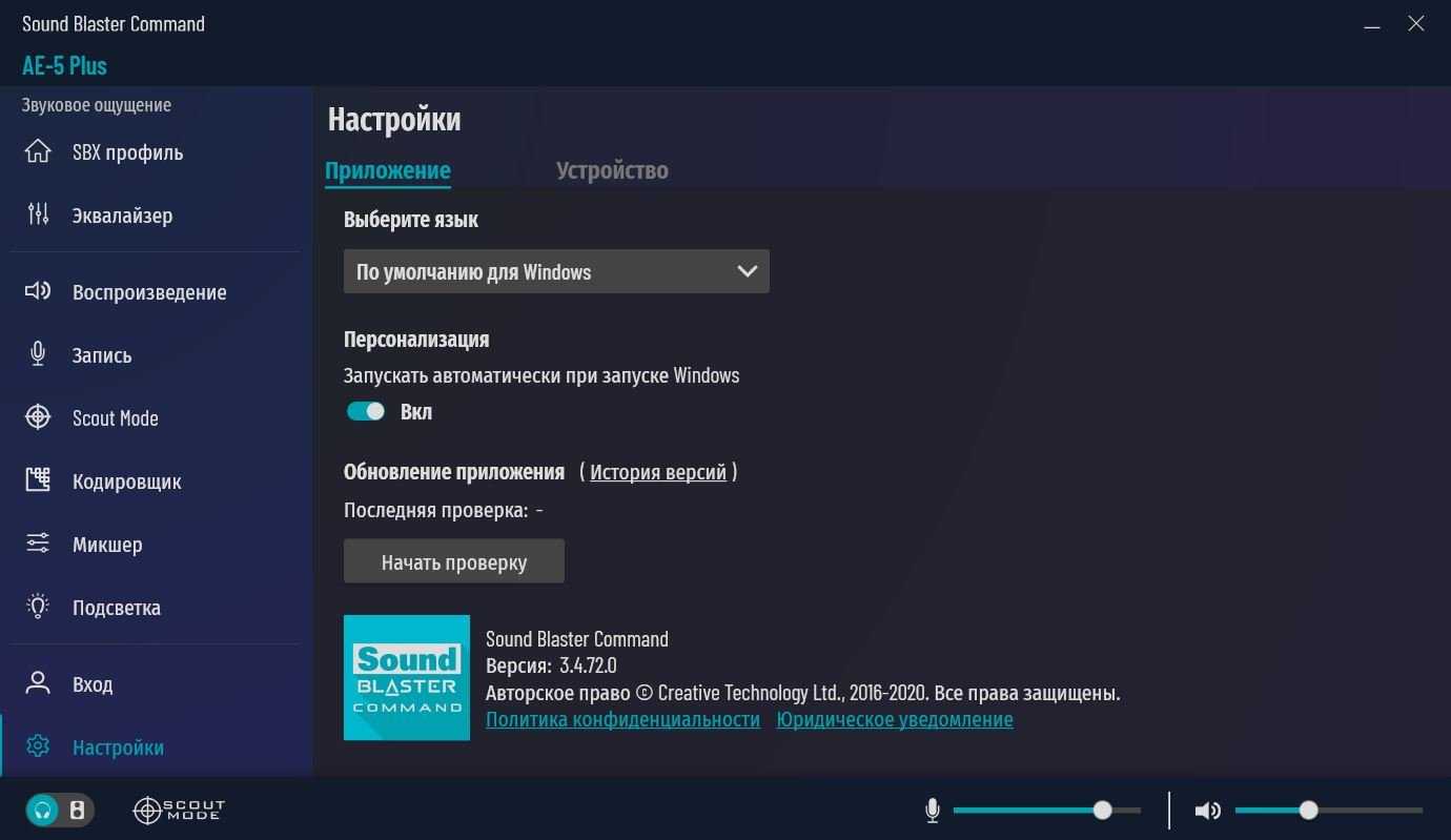 Драйвер Sound Blaster Commander имеет очень широкие настройки звука. Рассмотрим все вкладки.