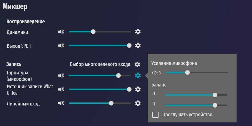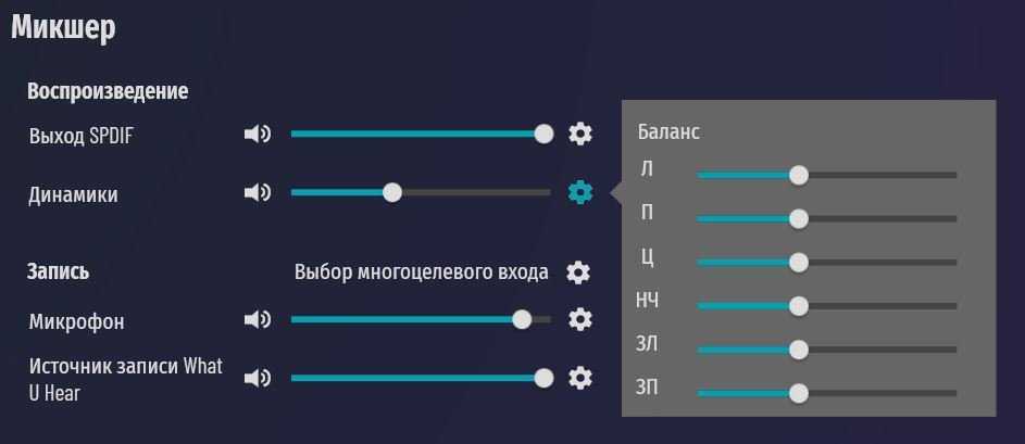 Микшер: настраивает громкость отдельных каналов, пригодиться для подключения многоканальной акустики. Настраивается расстояние до колонок — удобно, если многоканальную акустику не получается расставить равномерно. Сигнал будет подаваться с задержкой и формировать правильную звуковую сцену.