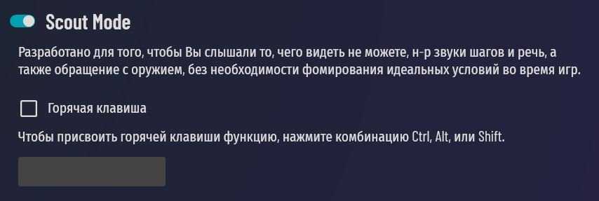 Scout Mode: во время игры горячей клавишей можно запускать фильтр, усиливающий тихие звуки и приглушающий громкие.