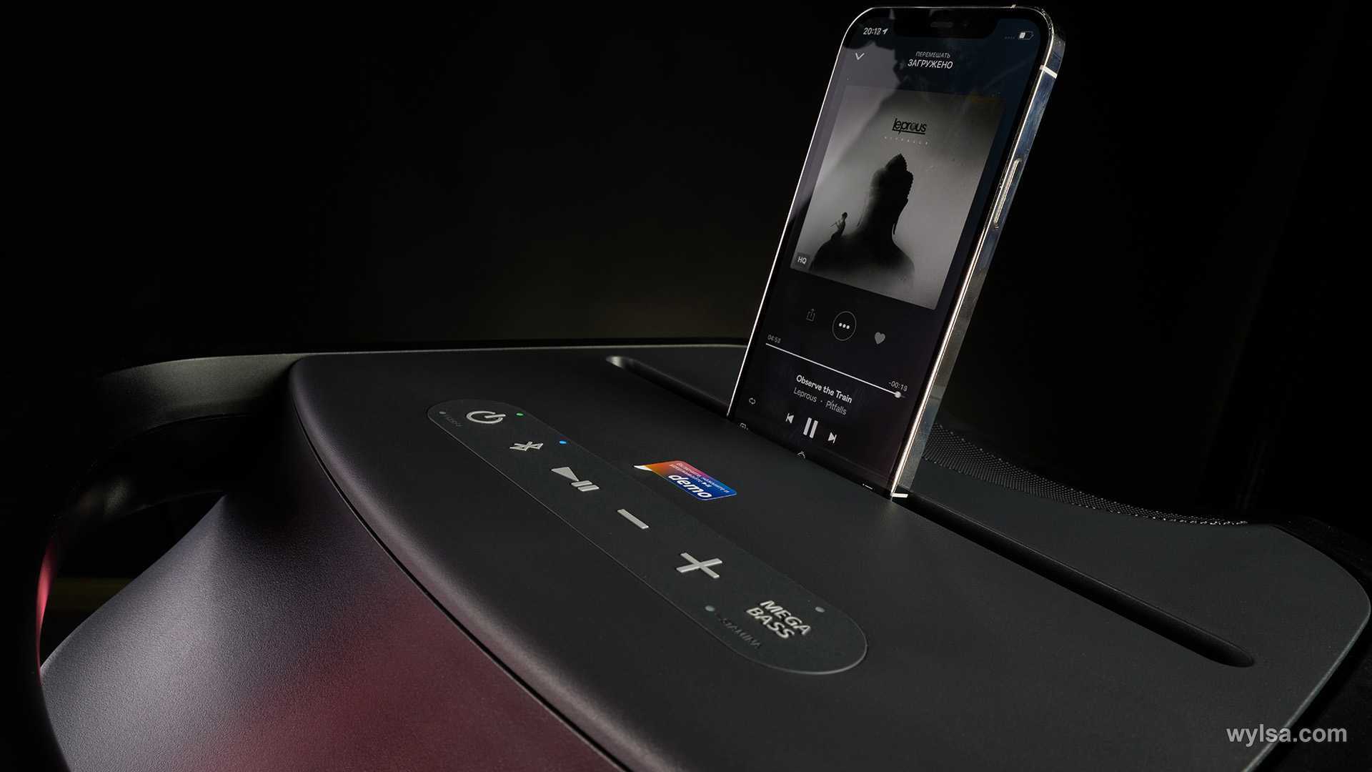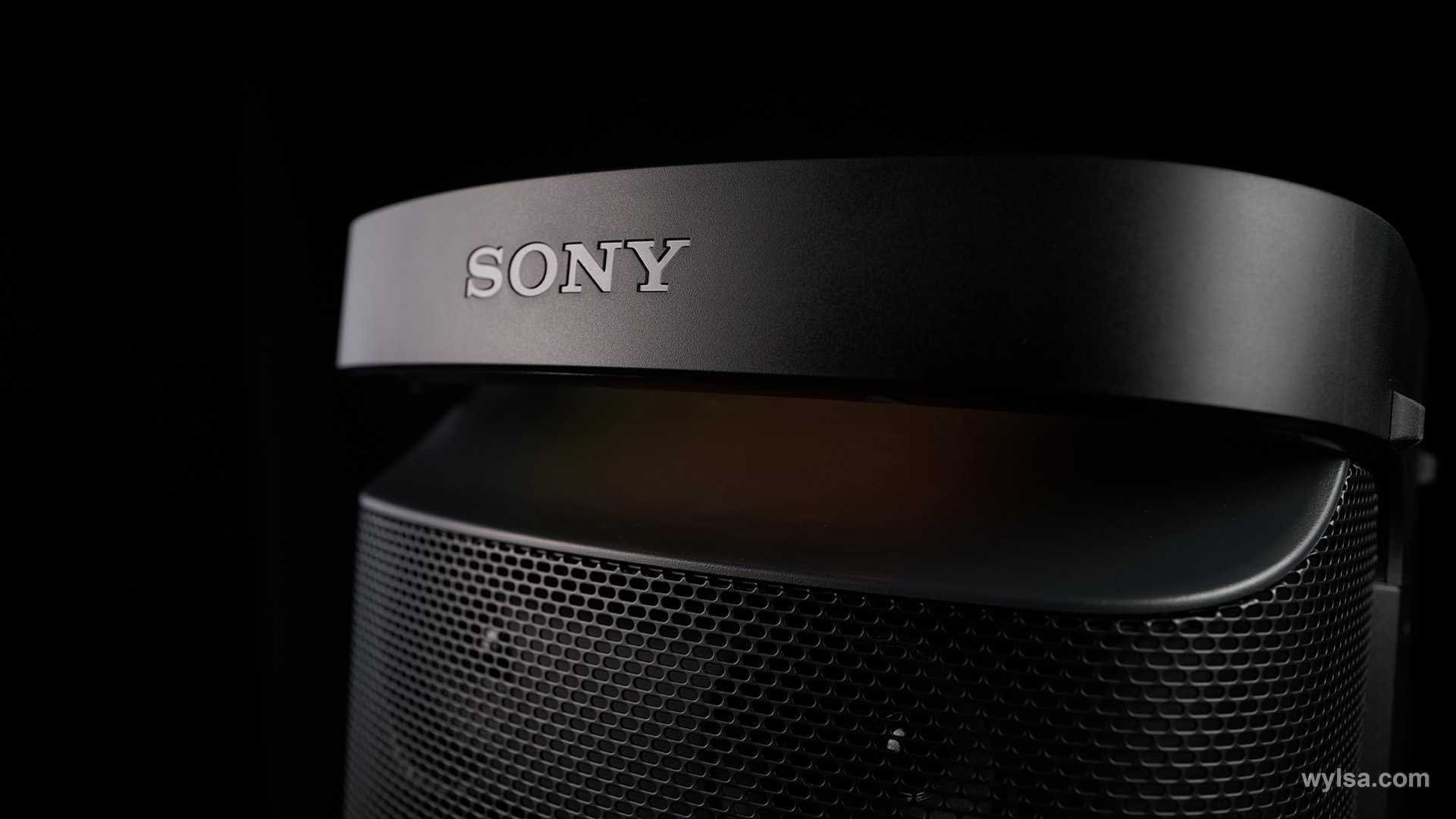 Дизайн — настоящий «сонистайл». Приятно сделаны кнопки, на месте атмосферная подсветка с возможностью самых разных регулировок, есть ручки для переноски. Предусмотрена и щель для установки смартфонов или даже планшета.