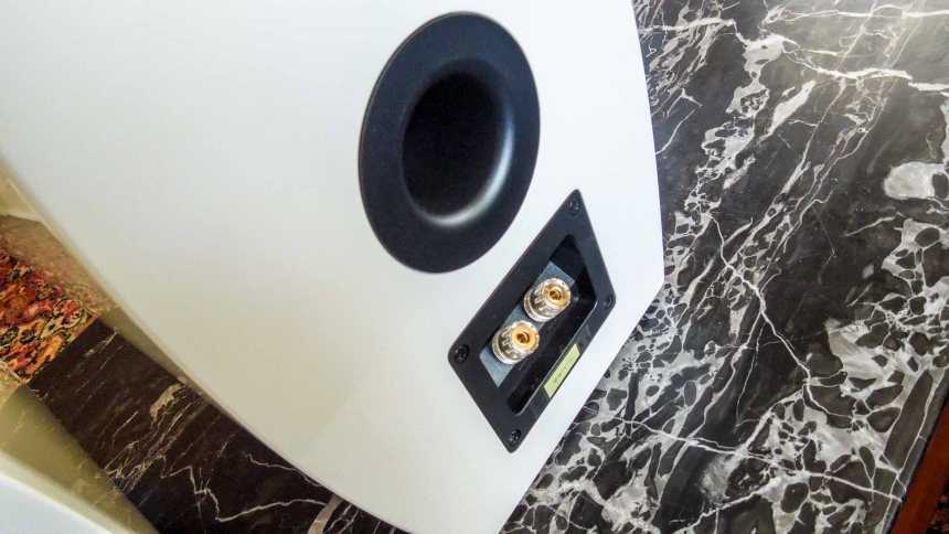 The speakers are rear-ported, with chunky binding posts. Charged with delivering crisp highs is a 19mm aluminium diaphragm dome tweeter, rated up to 100kHz; it’s allied to a flat 160mm woofer.