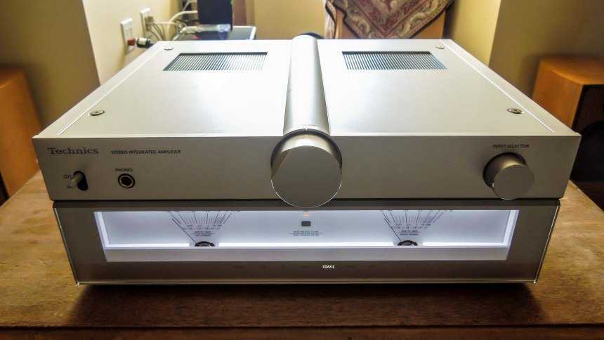 Naturally the fascia features characteristic illuminated VU meters (how could it not?), with a central volume dial. Rather than opt for a common–or-garden switch-mode power supply, Technics has gone old school with a low-noise, high-capacity linear power supply. This is a pleasing indulgence. The amp tips the scales at 7.9 kg.