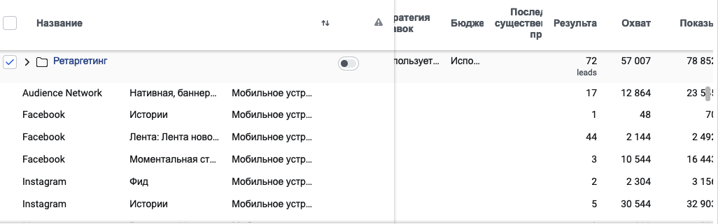 В рамках оптимизации рекламы для клиента из тематики образовательных курсов мы тестировали Audience Network в ретаргетинговой кампании. Изначально использовали все плейсменты, кроме Audience Network, но затем решили добавить и его.