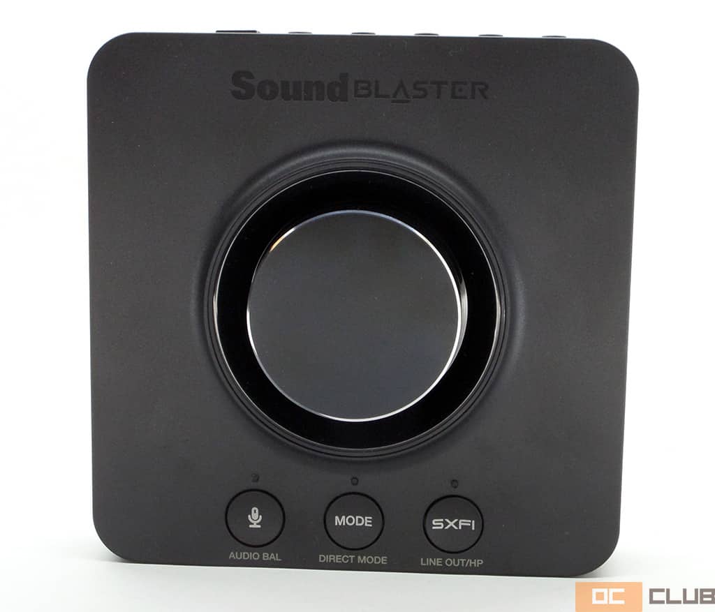“Чёрный прямоугольник с крутилкой” – самое краткое описание внешнего вида Creative SoundBlaster X3. Дизайн строгий, минималистичный, без налета псевдо-геймерности и кричащих цветов. Размеры небольшие – 129 х 129 х 40 мм. В центре расположен довольно крупный регулятор громкости с тонкой блестящей вставкой.