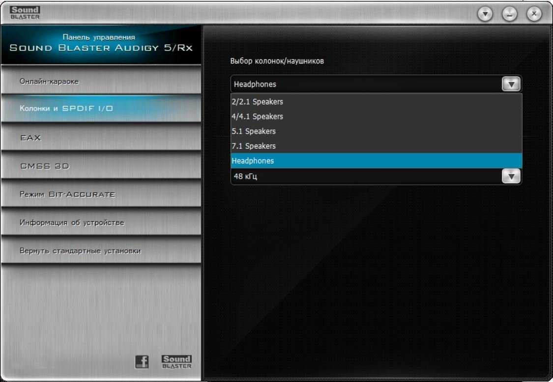 - Третья – активация режима SXFI. Отмечу, что при этом звук переключается на выход наушников, поскольку технология SXFI работает только с наушниками.