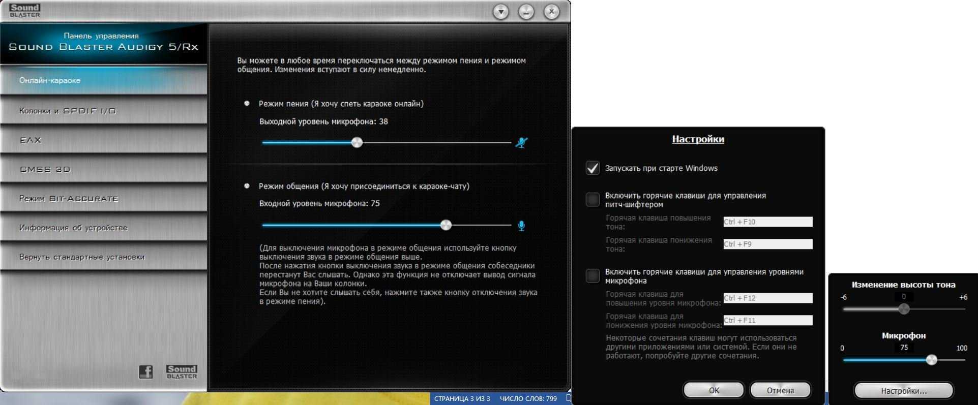 Кроме панели управления в комплекте к карте идет еще несколько программ. Караоке плеер с различными настройками и две студии звукозаписи.