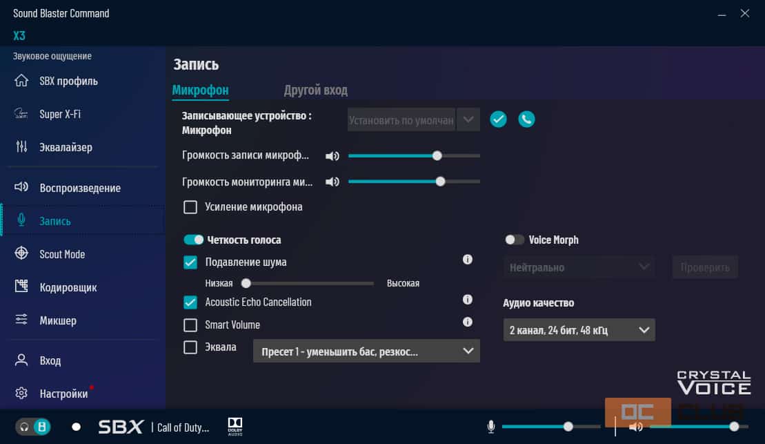 Creative SoundBlaster X3 может обойтись и без программного обеспечения Sound Blaster Command, но с ним функционал заметно расширяется. Русская локализация есть и очень хорошая.